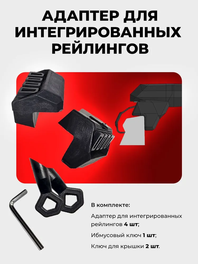В комплекте прилагается адаптер для интегрированных рейлингов - 4 шт.;