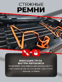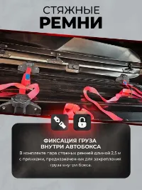 В комплекте идет пара стяжных ремней для крепления груза внутри;